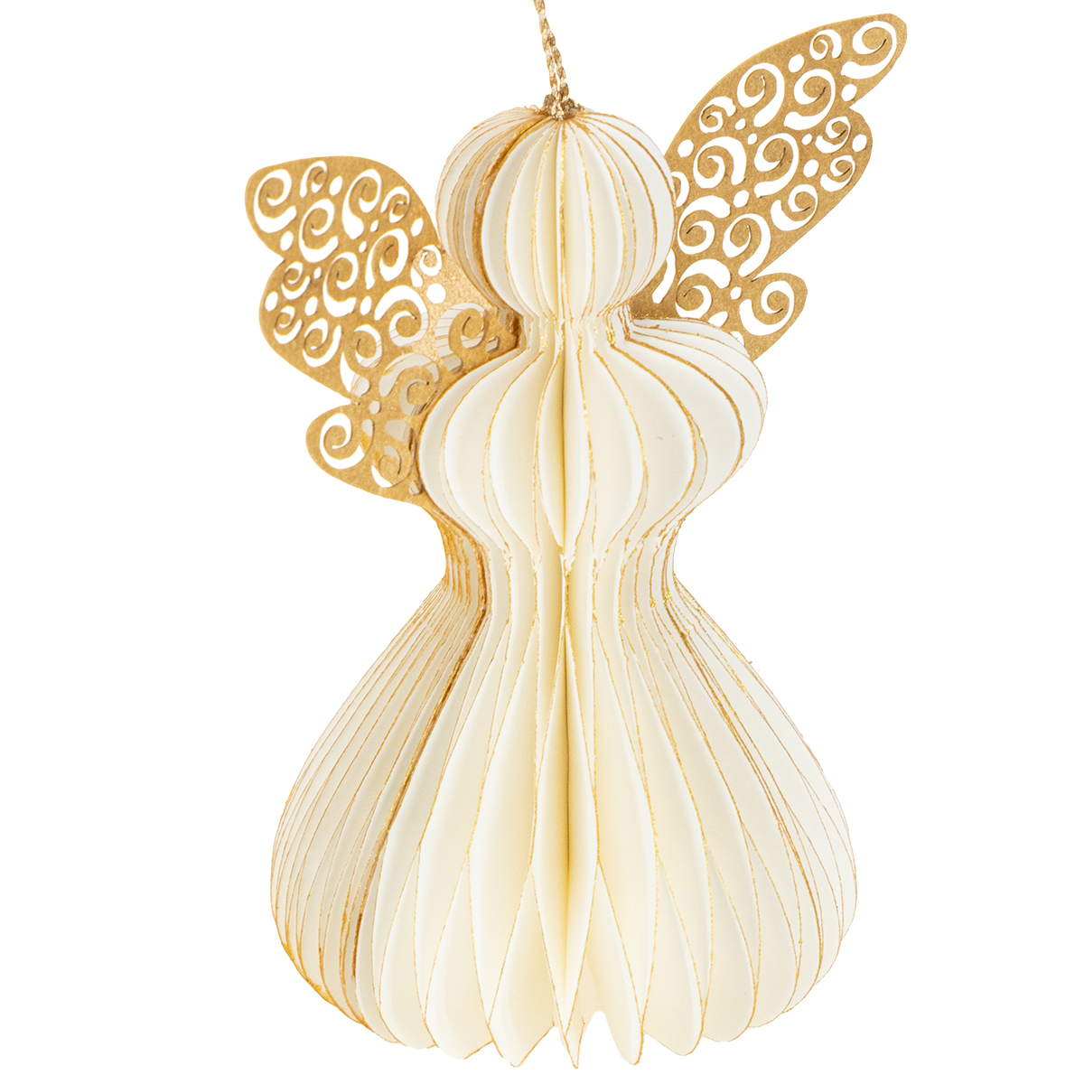 - Set aus vier Papierengeln in Weiß mit goldenen Details