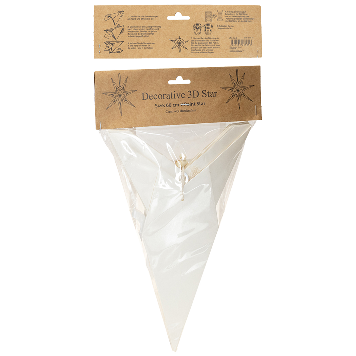 Bereichern Sie Ihre saisonale Dekoration mit einem zauberhaften Highlight! Der Papierstern in Cremeweiß mit einem beeindruckenden Durchmesser von 60 cm setzt stilvolle Akzente und ist ein vielseitiger Eyecatcher für jede Umgebung. Egal ob in Fenstern, über Tischen oder als Herzstück Ihres Dekorationskonzepts – dieser Stern verleiht jedem Raum eine harmonische, festliche Ausstrahlung.