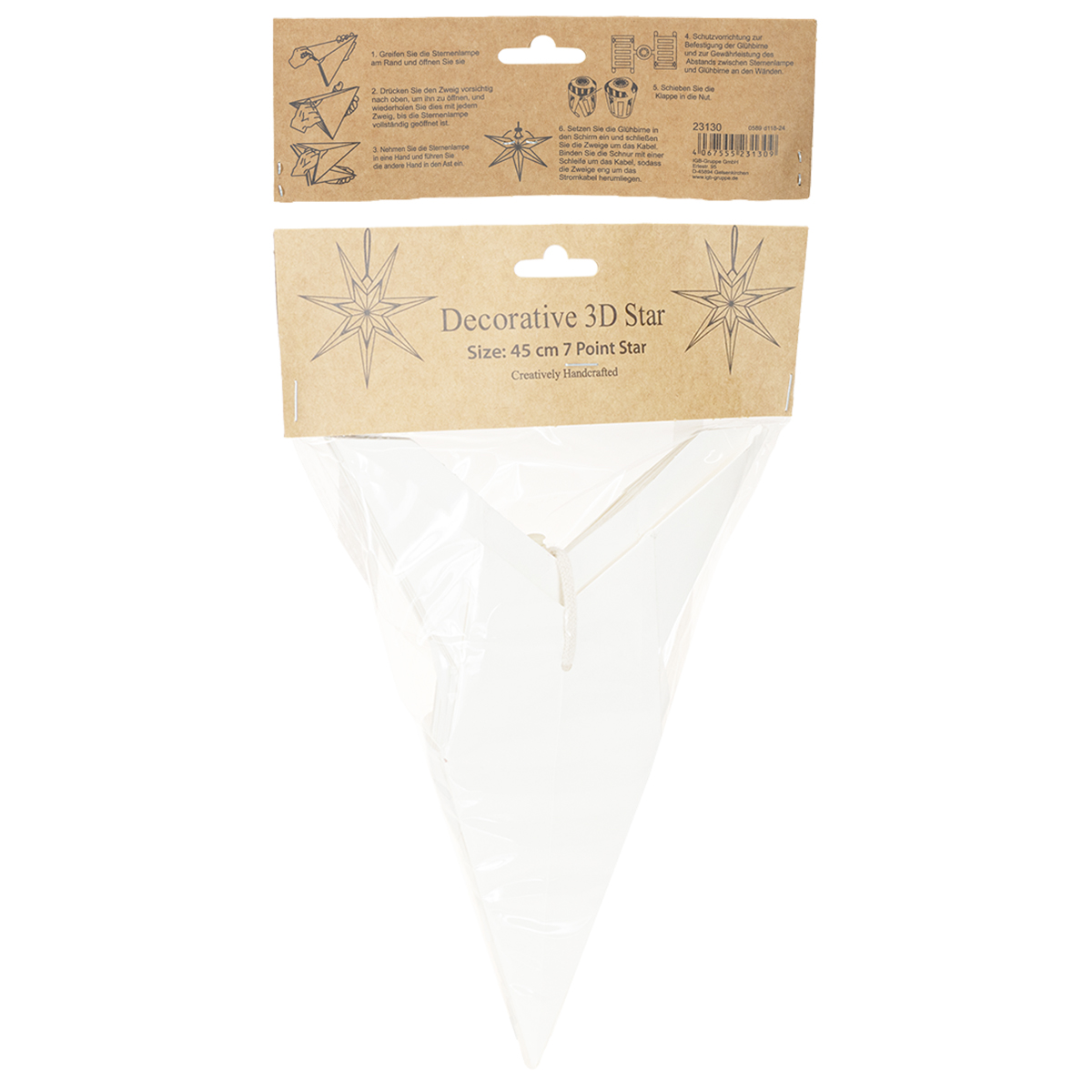 Die Papiersterne kommen in einem praktischen 3er-Set und sind äußerst vielseitig einsetzbar. Sie schaffen überall eine stimmungsvolle Weihnachtsatmosphäre – sei es in gewerblichen Räumen oder bei besonderen Events. Kombinieren Sie die Sterne mit weiterer Weihnachtsdeko und profitieren Sie von attraktiven Großhandelspreisen.