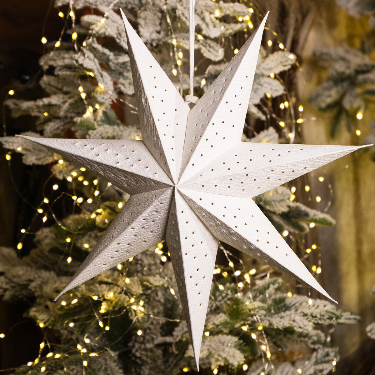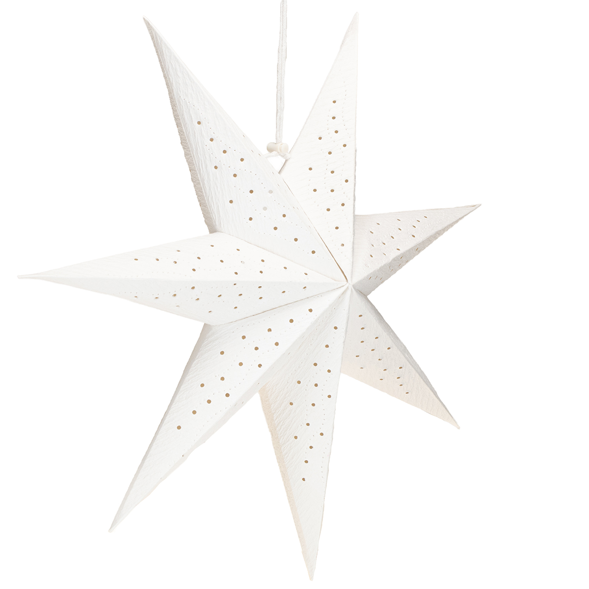 Diese Papiersterne vereinen minimalistisches Design mit nordischer Gemütlichkeit. Hergestellt aus robustem Papier, sind sie langlebig und leicht zu handhaben. Die perforierten Muster erzeugen ein bezauberndes Lichtspiel, das besonders in Kombination mit warmweißen Lichterketten oder LED-Lampen zur Geltung kommt. Ein integriertes Baumwollband mit Kordelstopper ermöglicht einfaches Aufhängen, während die strahlend weiße Farbe vielseitig kombinierbar ist – ob mit Tannenzweigen, dezenten Dekokugeln oder weiteren Papierornamenten.