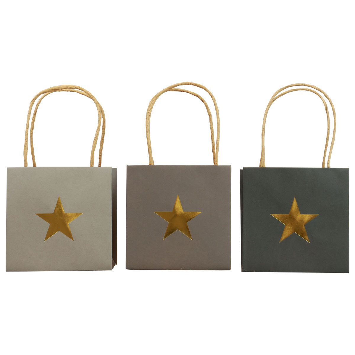 Sie bekommen die kleinen Geschenktüten mit Stern sortiert in drei dezenten Grautönen.