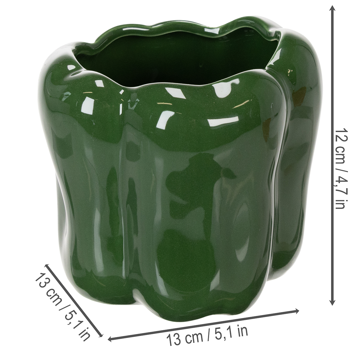 Mit einer natürlichen Paprika-Form und einem Durchmesser von 13 cm bietet dieses Set genug Platz für Ihre dekorativen Ideen. Nutzen Sie die Keramikübertöpfe als stilvolle Pflanzgefäße für Kunstpflanzen, Küchenkräuter oder farbige Trockengestecke. Auch als dekorative Behälter für Löffel, Stifte oder andere Kleinigkeiten entfalten diese Töpfe ihr volles Potenzial.