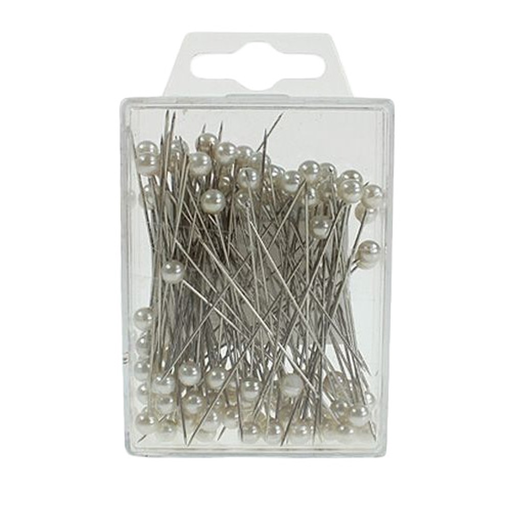 Sie erhalten hier 150 Perlkopfnadeln in Weiß und Silber in einer handlichen Box aus Kunststoff, wobei jede Nadel etwa 40 Millimeter lang ist. Die Kunststoff-Perlen verfügen jeweils über einen Durchmesser von rund 4 Millimetern.
