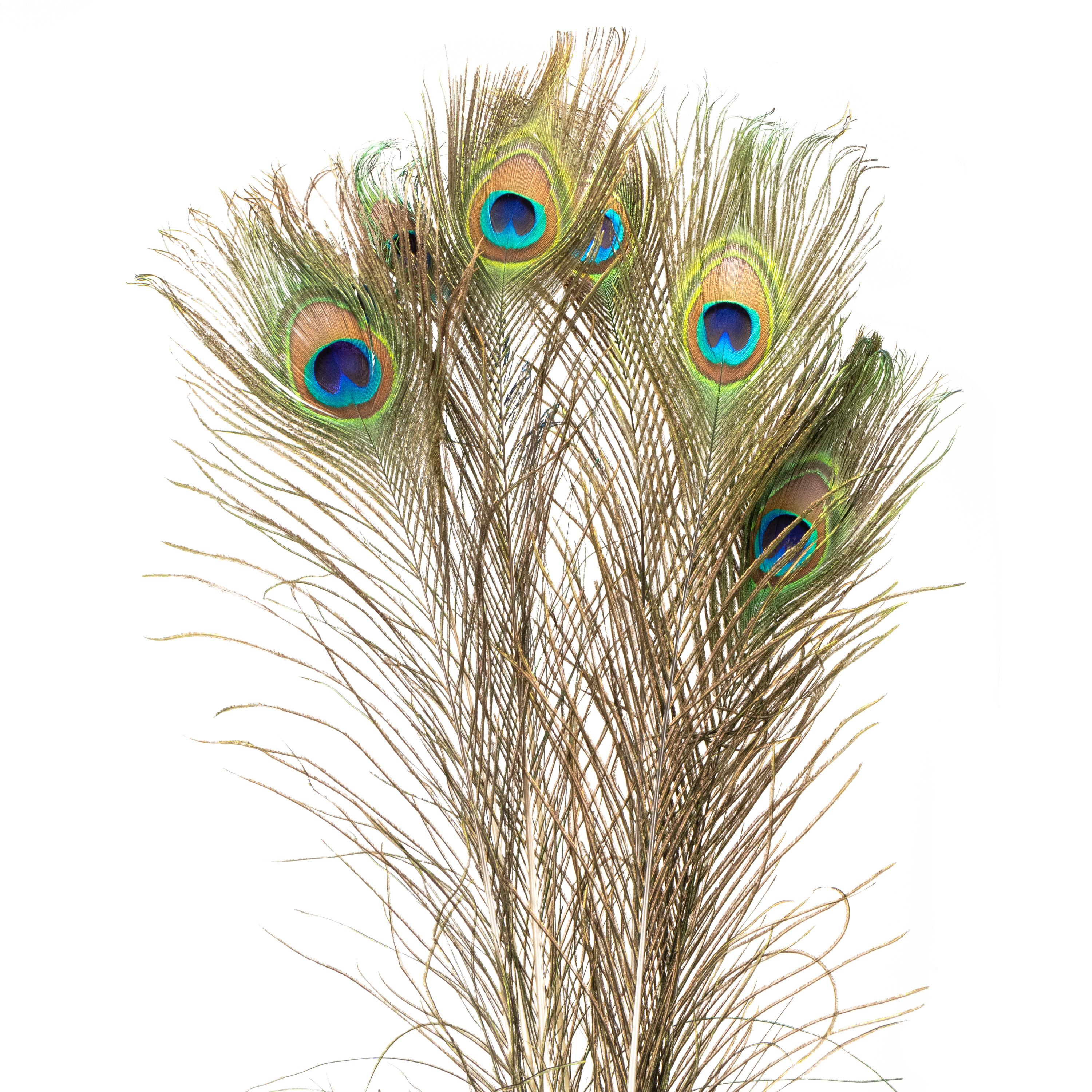 Verleihen Sie Ihren Dekorationen das gewisse Etwas mit eleganten, schimmernden Pfauenfedern. Diese hochwertigen Federn bringen mit ihrem faszinierenden Farbspiel aus Blau, Grün und Kupfer natürlichen Luxus in jedes Ambiente. Perfekt für Floristen, Eventplaner und Dekorateure, die mit stilvoller Gestaltung überzeugen möchten.
