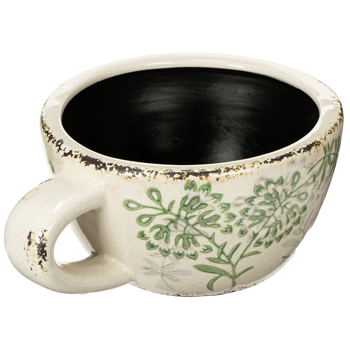 Produktname: Pflanzgefäß Keramiktasse mit floralem Muster 18cm dekorative Zimmerdekoration
