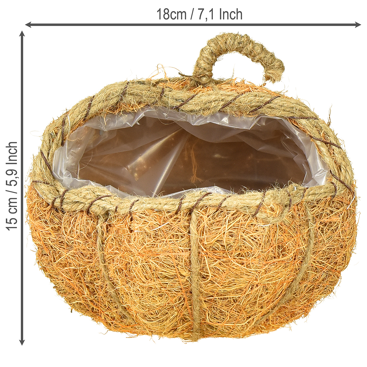 Pflanzkorb Kürbis mit Folie Herbstdeko Orange Ø18cm H15cm, perfekte Herbst-Dekoration