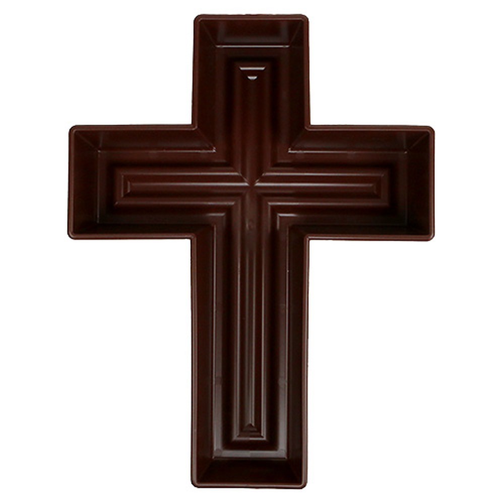 Das Pflanzkreuz in Braun besteht aus hochwertigem Kunststoff und ist witterungsbeständig. Die Außenmaße betrage circa 38 x 50 Zentimeter, die Innenmaße 36 x 48 Zentimeter. Die Höhe beträgt dabei ungefähr 7,5 Zentimeter.