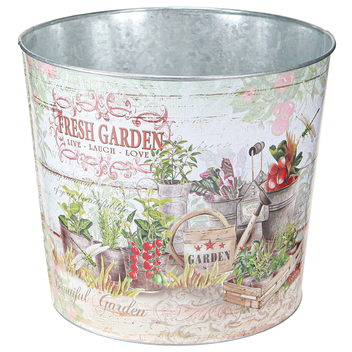 Entdecken Sie den charmanten Pflanzkübel Rund Metall "Fresh Garden" mit einer Höhe von 21 cm und verleihen Sie Ihrer floralen Präsentation neuen Schwung. Perfekt für Floristen und Blumengeschäfte, bringt dieser Kübel fröhliche Frühlingsstimmung in jeden Raum – ideal für Dekorationen auf Balkon, Terrasse oder im Schaufenster.