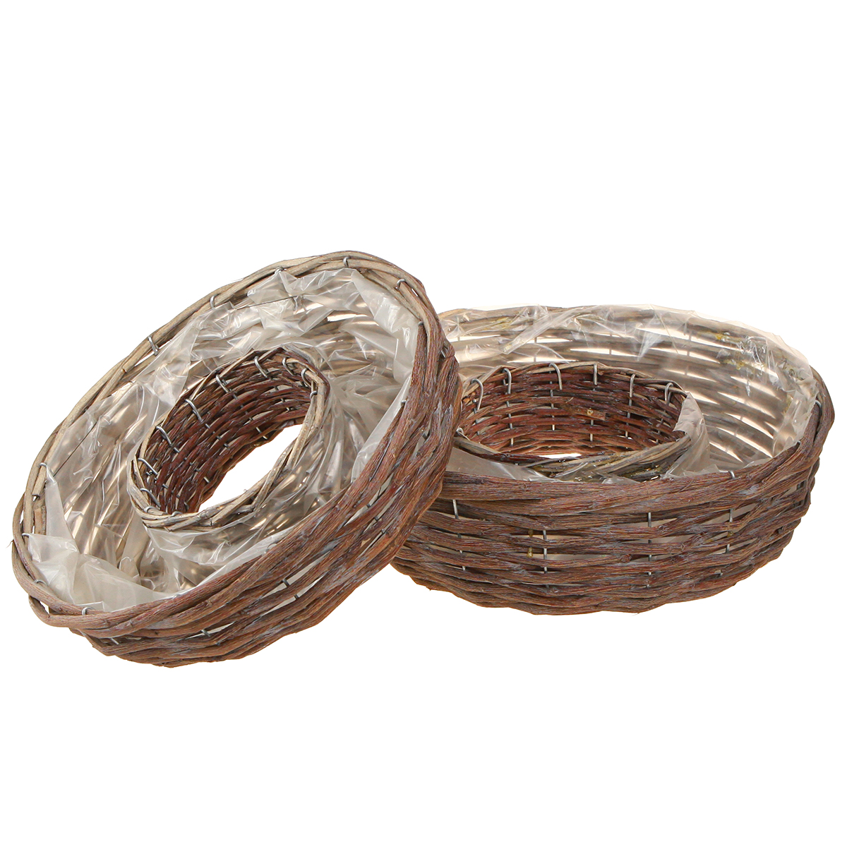 Pflanzring Pflanzschale Holz Rattan Grau Ø30/35cm 2er-Set für Dekoration