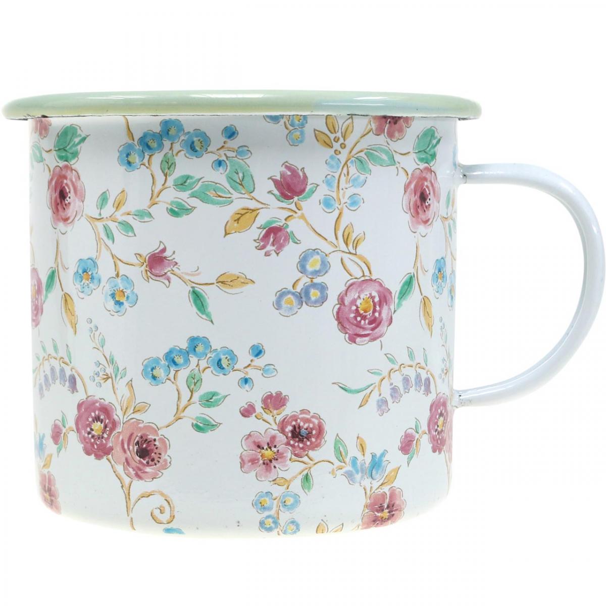 Pflanztasse Rosen Emaille Deko Tasse mit Henkel Weiß Ø9,5cm