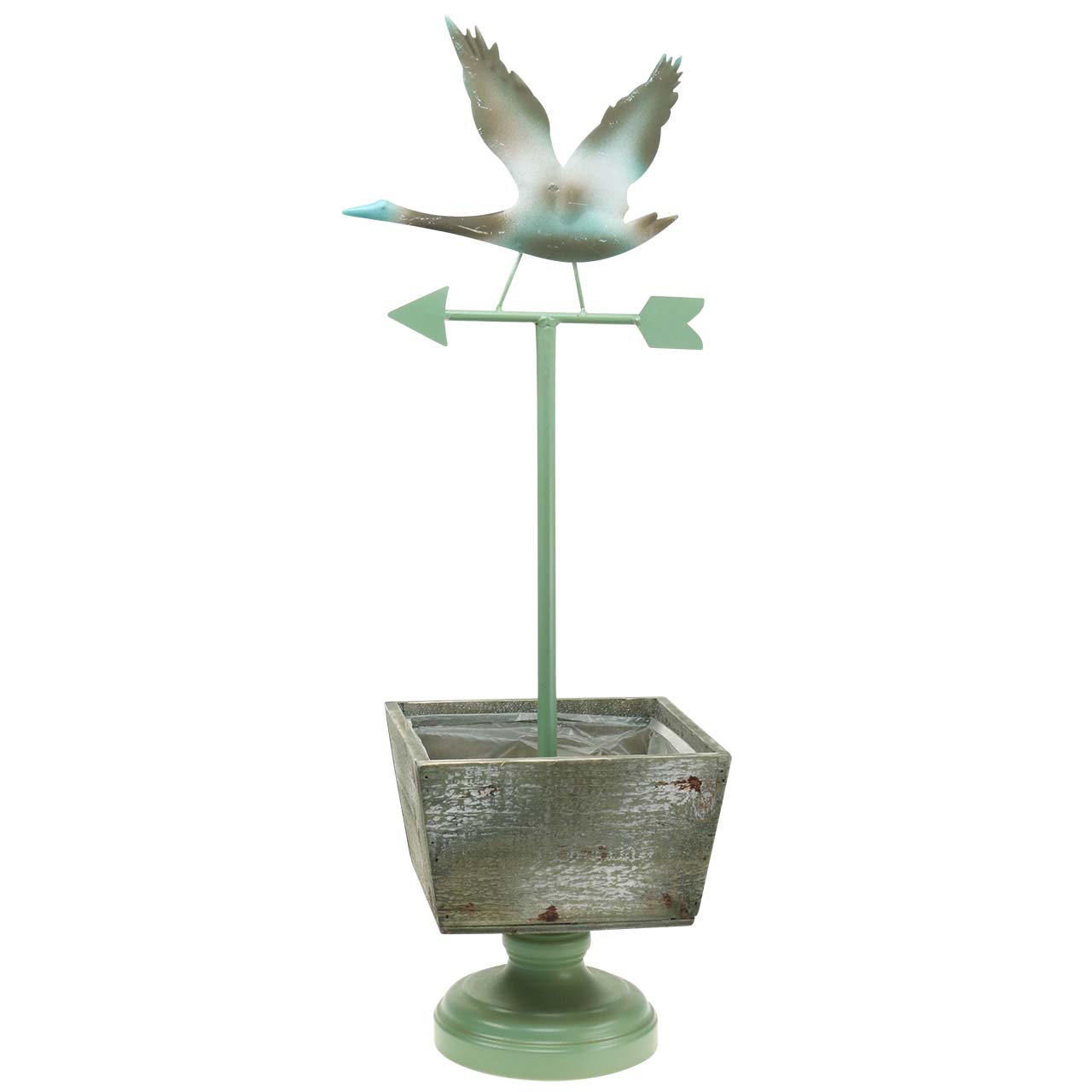 Pflanztopf mit Fuß Wetterfahne Holz Natur/grün 26x20cm H68cm