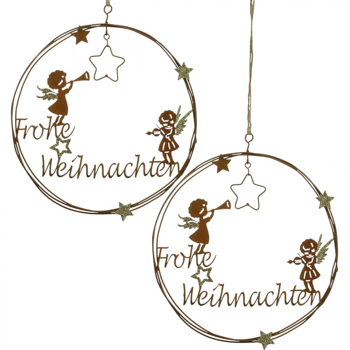 Frohe Weihnachten Schriftzug Dekoring Rost Ø19cm 2St