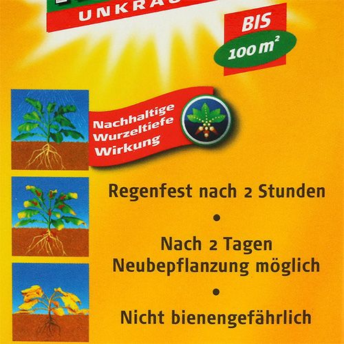 Der ideale Begleiter für den Hobbygärtner! Mit dem Roundup® Plus Unkrautfrei können Sie nicht nur Ihre Wege und Plätze von Unkräutern und Ungräsern befreien, sondern Ihre Fläche auch für die Rasenerneuerung und die Kulturvorbereitung von Zierpflanzen vorbereiten. Entnehmen Sie anhand der detaillierten Tabelle auf der Rückseite der Packung die genauen Mischverhältnisse für das Konzentrat.So können Sie das Unkrautvernichtungsmittel mit der beigefügten Mischkappe dem Sprüh- oder Gießwasser beimischen. Das hochwirksame Blattherbizid wird innerhalb weniger Stunden aufgenommen und in der gesamten Pflanze bis in die Wurzeln verteilt. So können Sie auch ausdauernde und hartnäckige Unkräuter bekämpfen. Und bereits nach 2 Tagen können Sie Zierpflanzen und Rasen nachbauen beziehungsweise nachsäen. Bei ausdauernden Ungräsern sollten Sie allerdings 7 Tage warten.