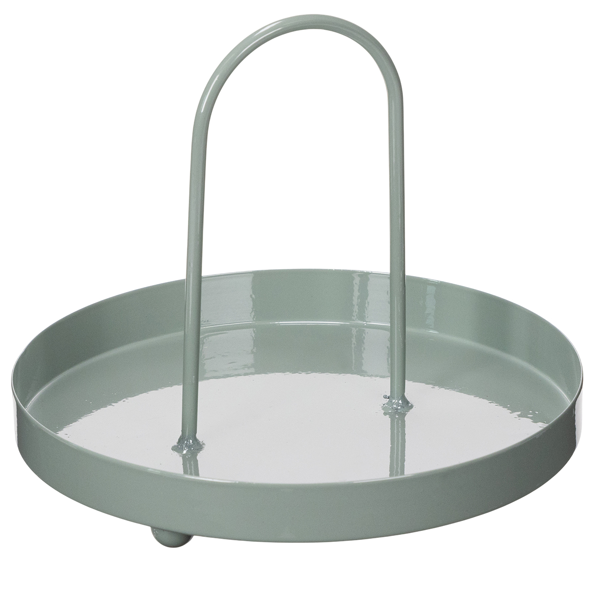 Rundes Tablett aus Metall mit Griff grün 18 cm für Dekoration und Organisation