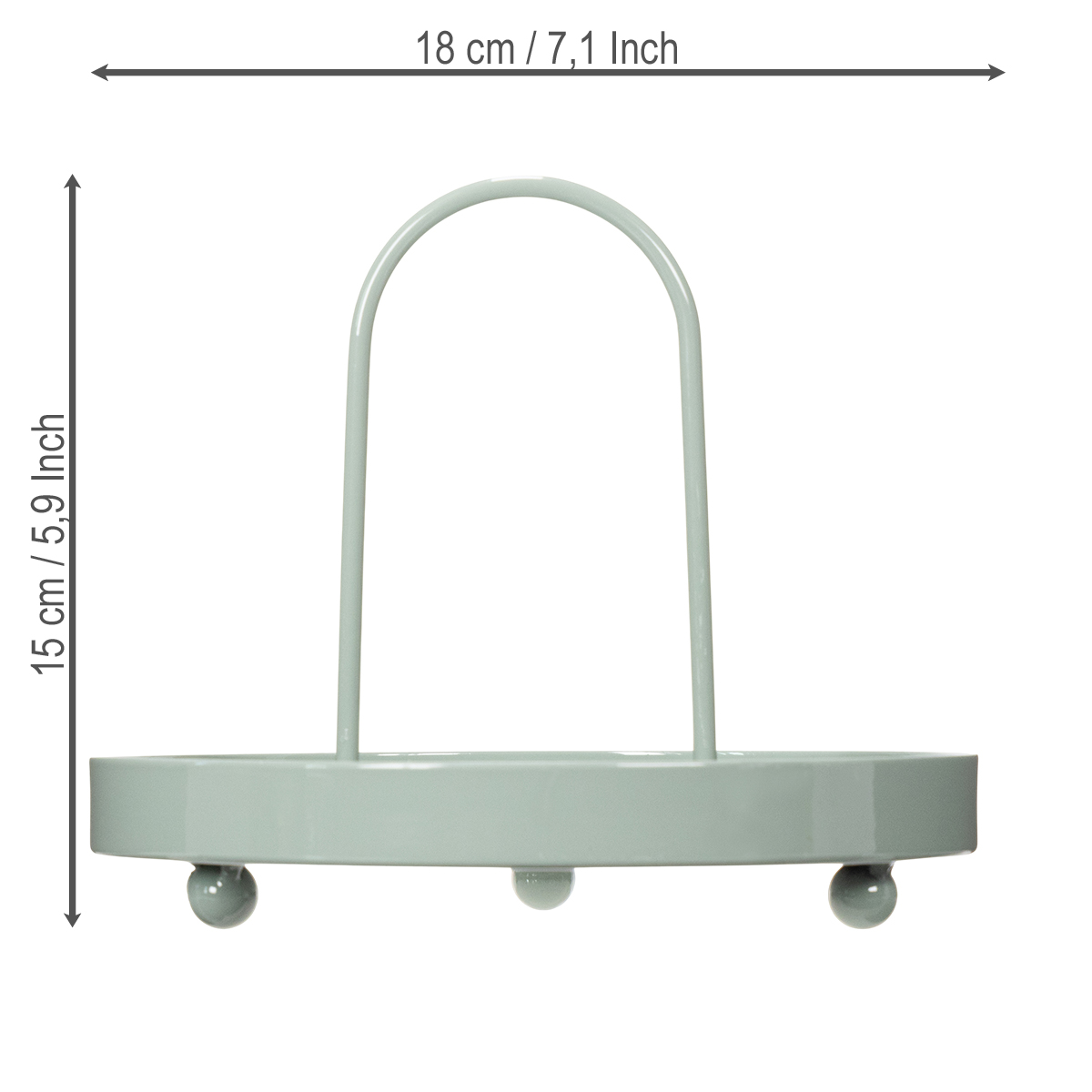 Dieses Tablett aus hochwertigem Metall ist nicht nur ein praktisches Hilfsmittel, sondern setzt auch geschmackvolle Akzente in jedem Raum. Mit seinem runden, minimalistischen Design und der sanften pastellgrünen Farbe fügt es sich nahtlos in zeitgenössische und skandinavische Einrichtungsstile ein. Der hohe Griff sorgt für eine einfache Handhabung und verleiht dem Tablett zusätzlich eine dekorative Note.