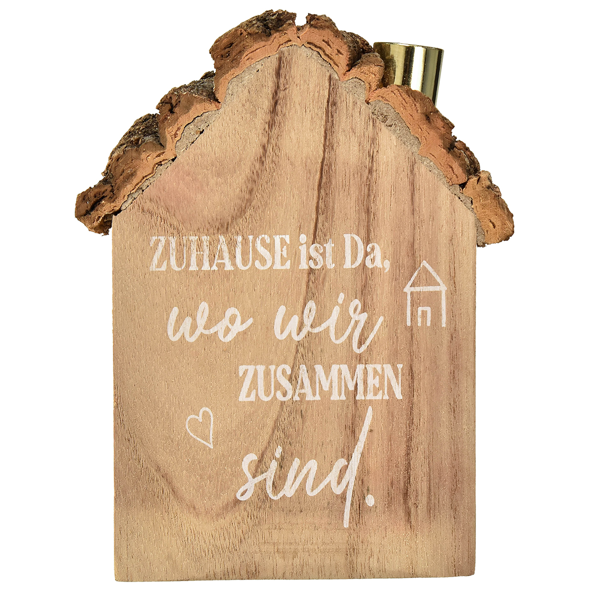 Rustikaler Holz-Kerzenhalter im Hausdesign – Mit herzlicher Botschaft, 19 cm – Gemütliche Heimdekoration