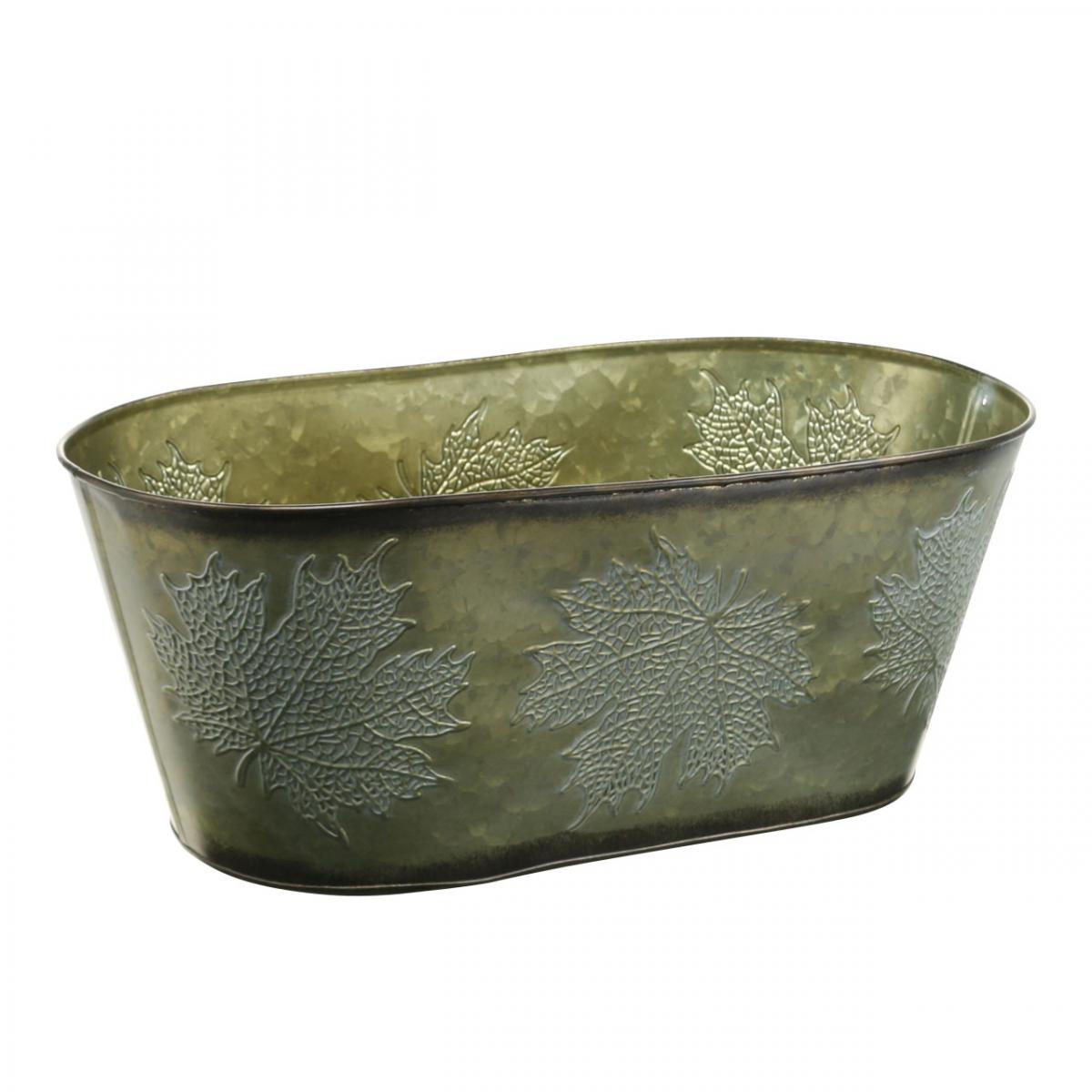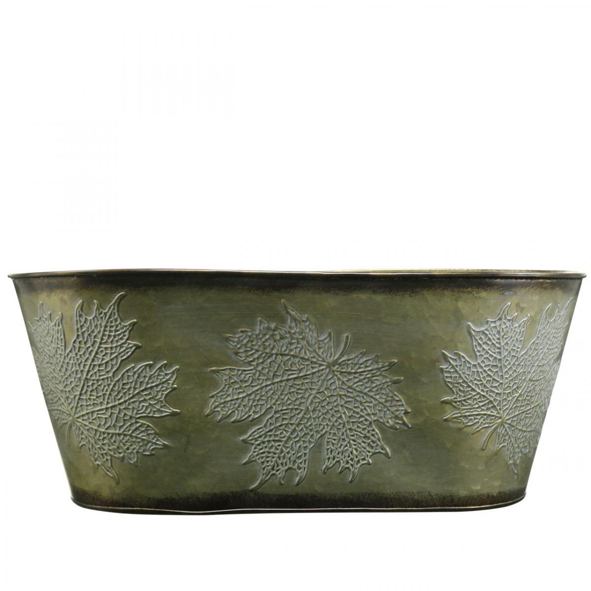 Pflanzschale für den Herbst, Metalldeko mit Blattdekor Grün L38cm H15cm