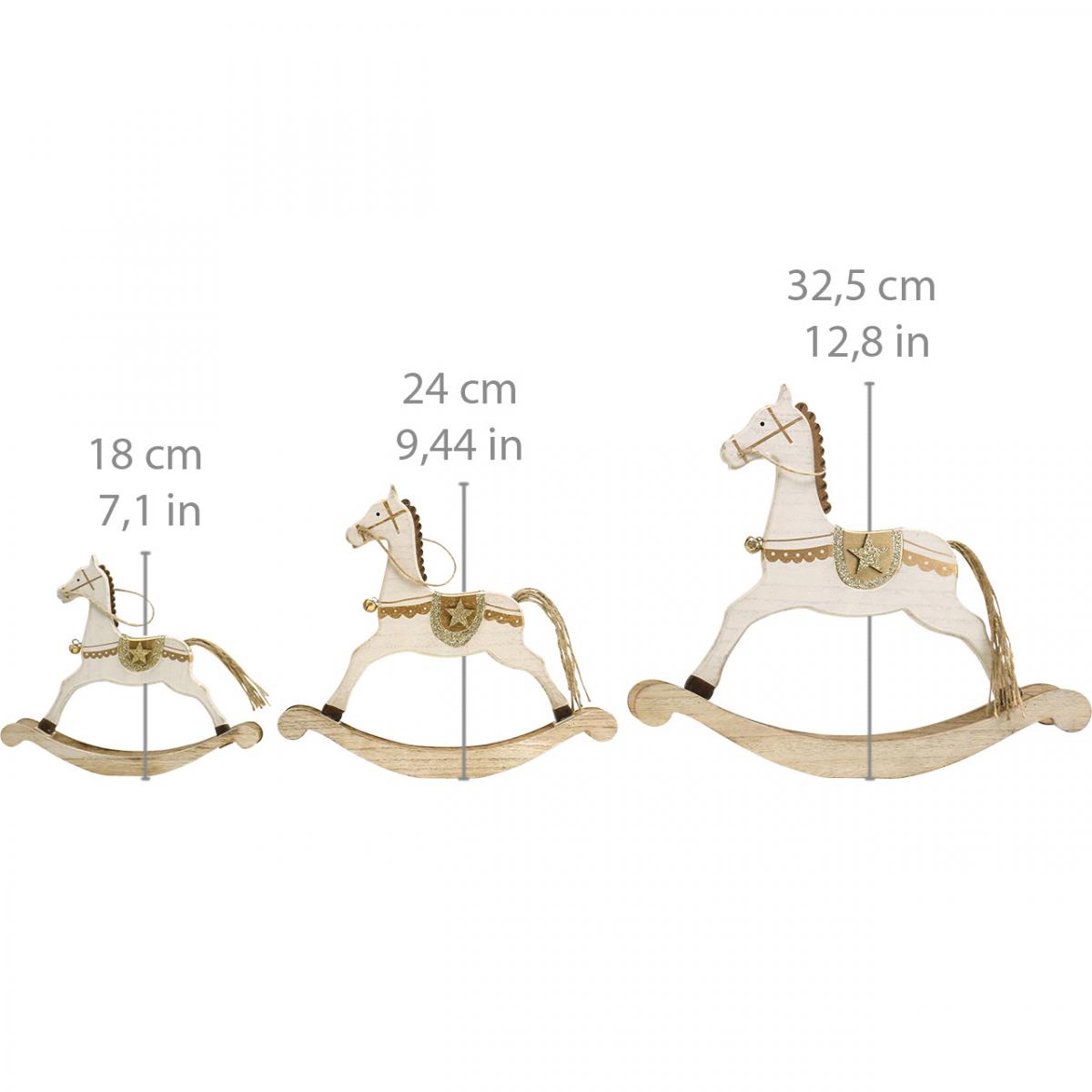 Schaukelpferd Holz, Weihnachtsdeko Weiß Golden H24cm