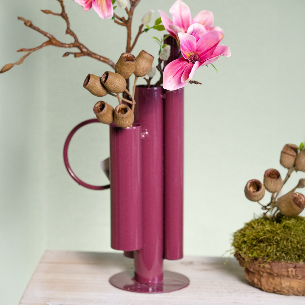 Schlanke moderne Dekovase aus Metall in Rot für stilvolle Tischdekoration, 31 cm