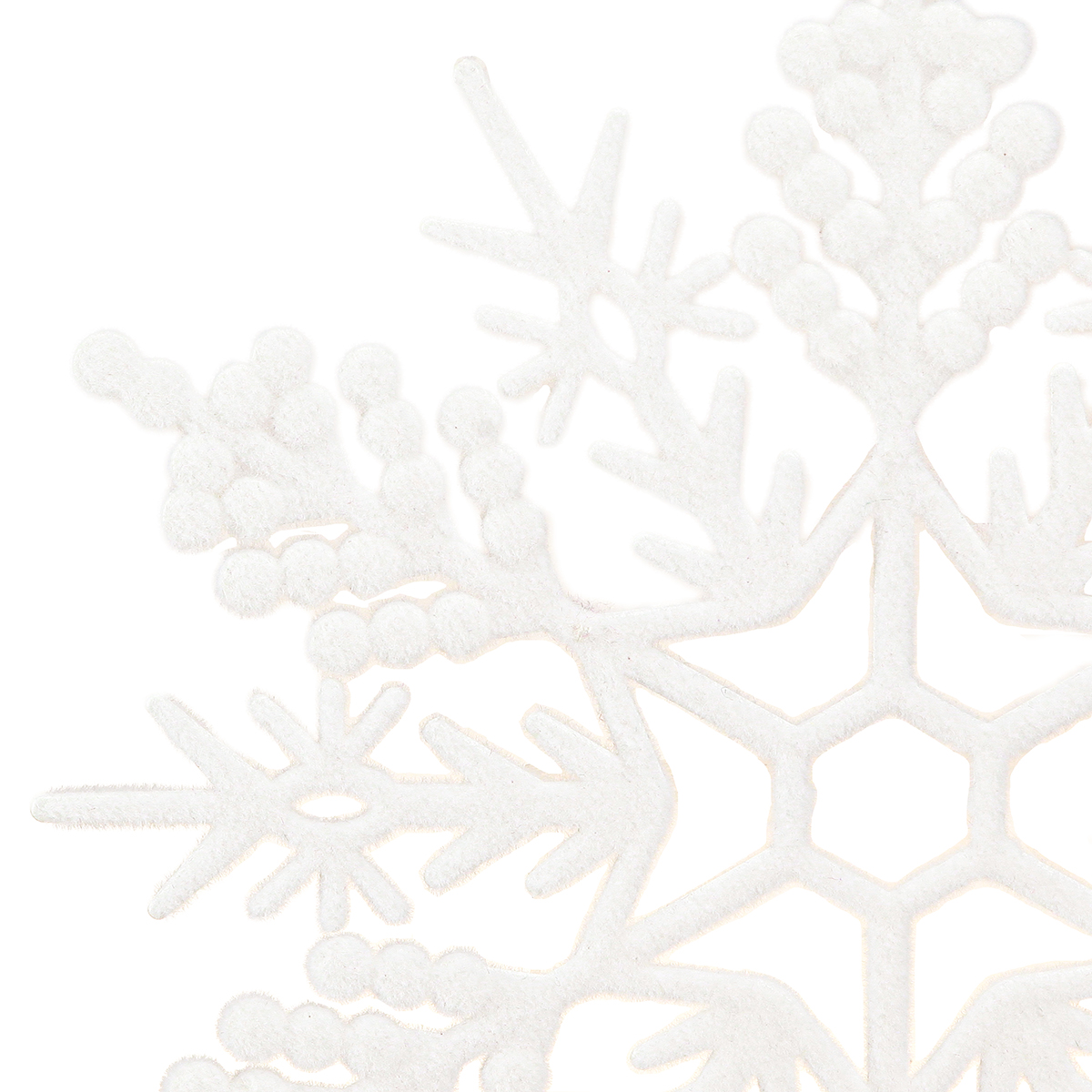 - 3 weiße Schneeflocken mit etwa 30 cm Durchmesser