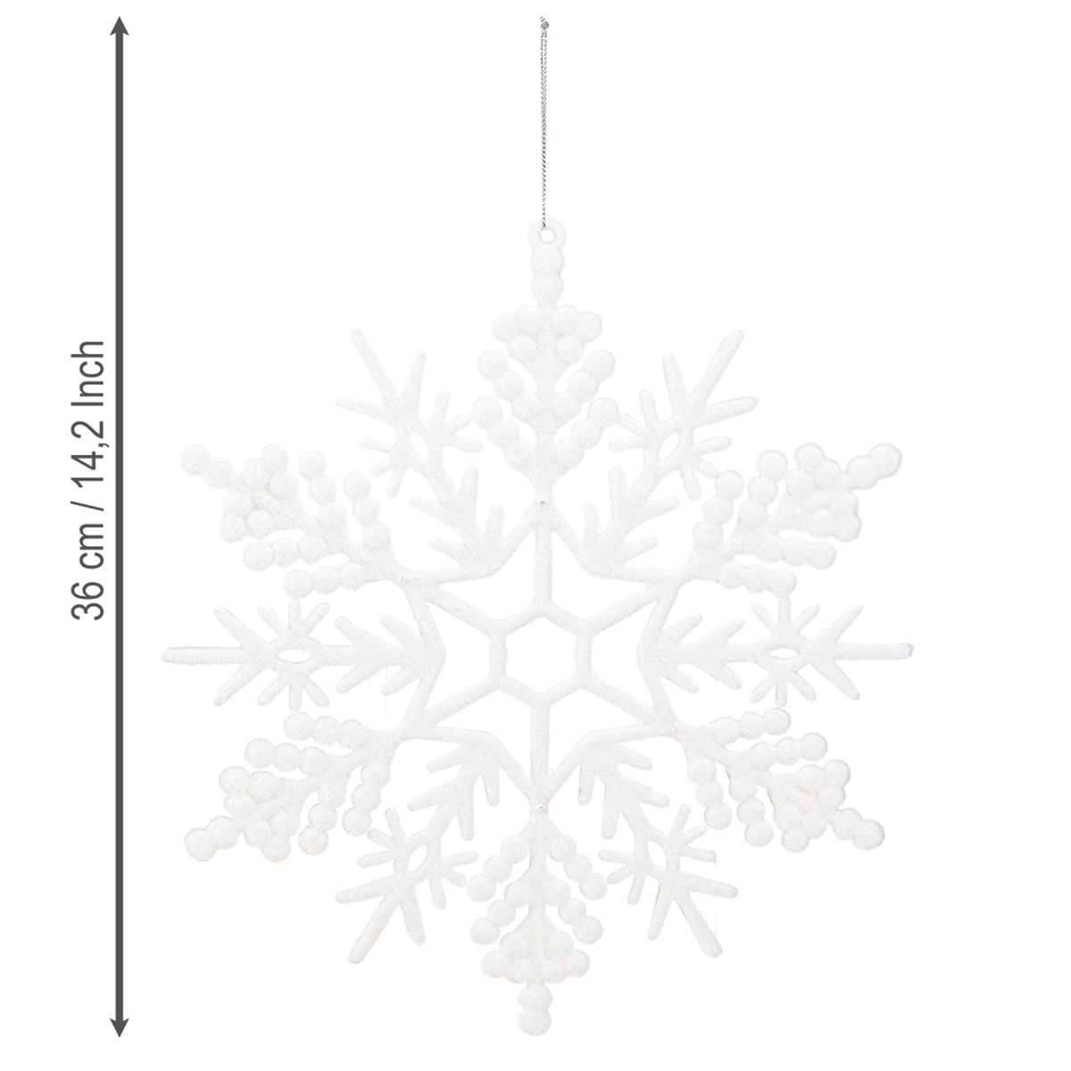 Unsere Schneeflocken-Deko, optisch einer echten Schneekristall-Nachbildung nachempfunden, ist die perfekte Wahl für eine beeindruckende Schaufensterdekoration. Hergestellt aus leichtem, strapazierfähigem Kunststoff, können diese 30 cm großen Schneeflocken jede Saison neu verwendet werden, ohne an Qualität zu verlieren. Der silberne Aufhänger verleiht dem Produkt eine besondere Note, während das zurückhaltende Weiß Harmonie in jede Farbgebung bringt.