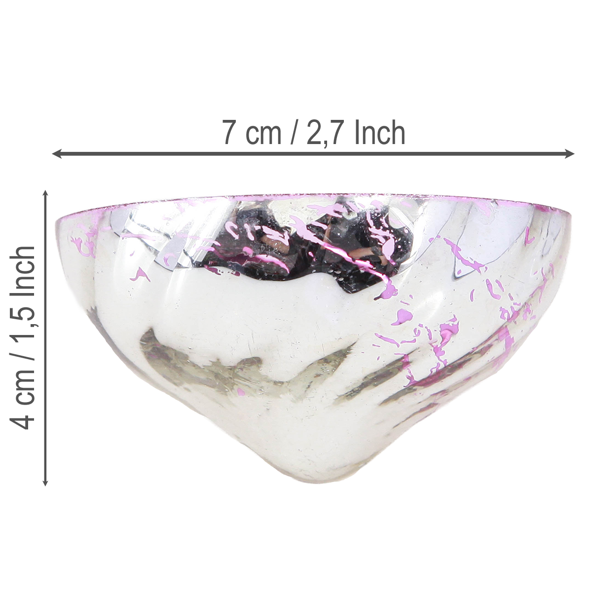 Produktname: Schwimmschale Teelichthalter Glas Silber Lila Ø7cm 3er Set Vintage-Deko