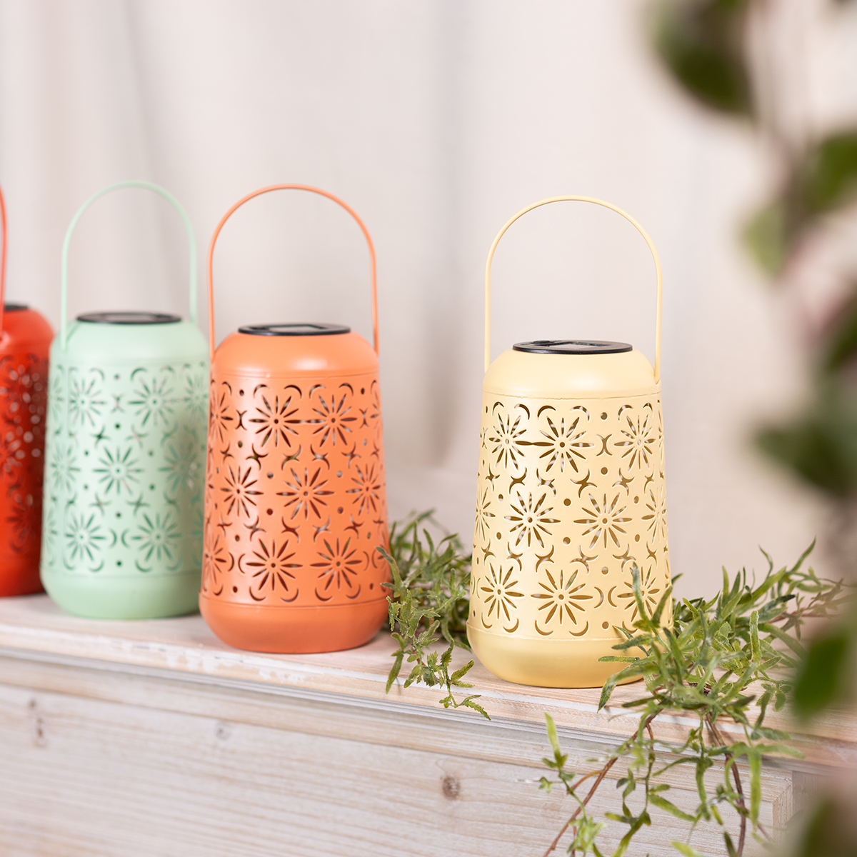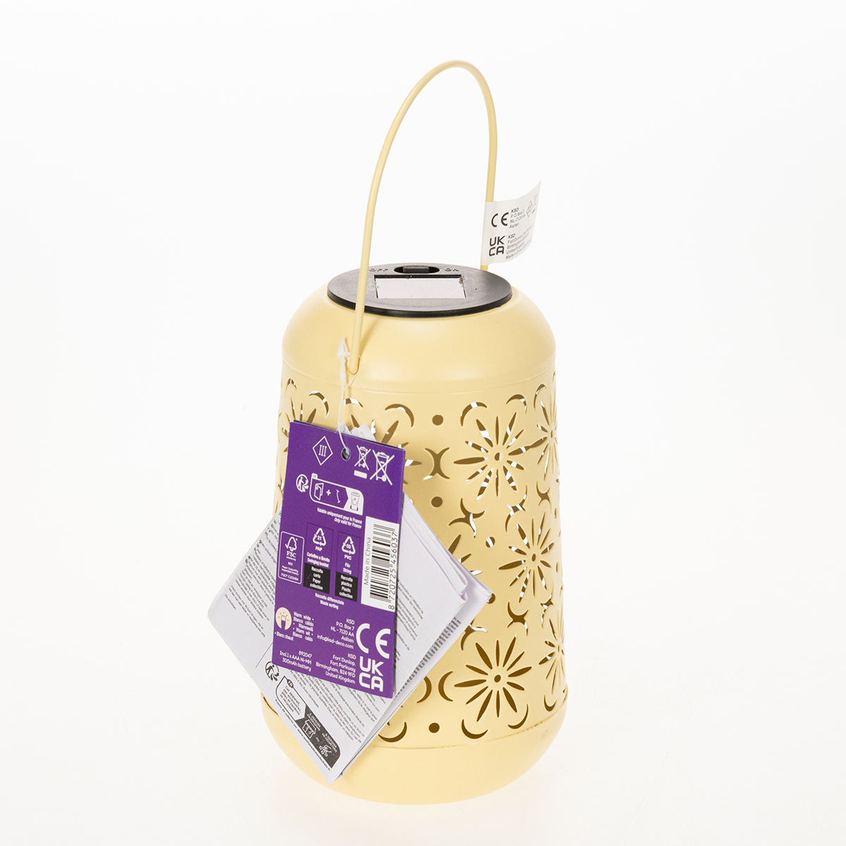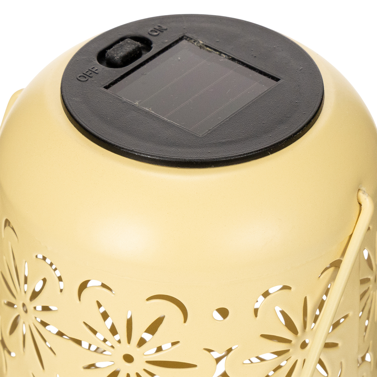 Solar Laterne Garten Metall Gelb Blumenmuster LED Licht 26cm