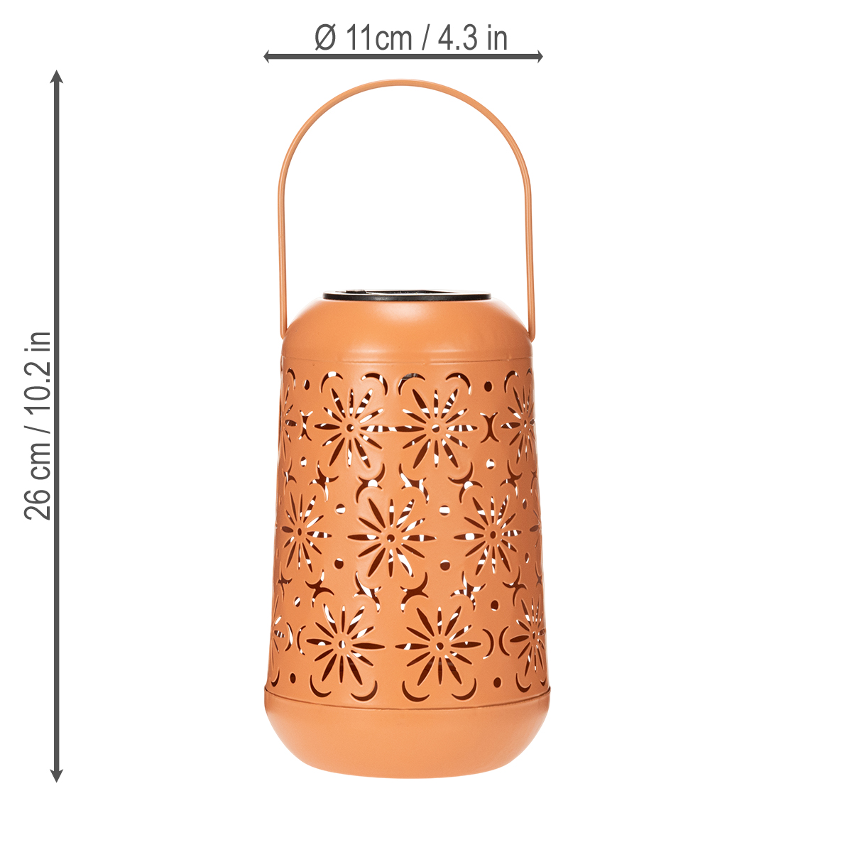 Solar Gartenlaterne mit floralem Muster, warmweißer LED und 26cm Höhe