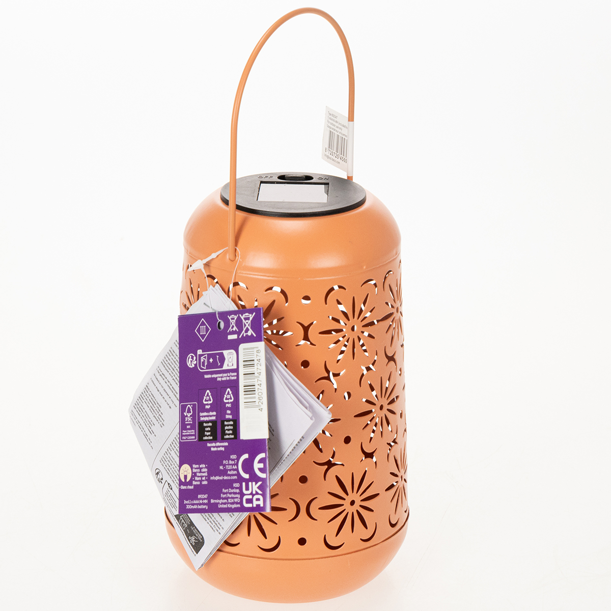 Produktname: Solar Gartenlaterne mit floralem Muster, warmweißer LED und 26cm Höhe