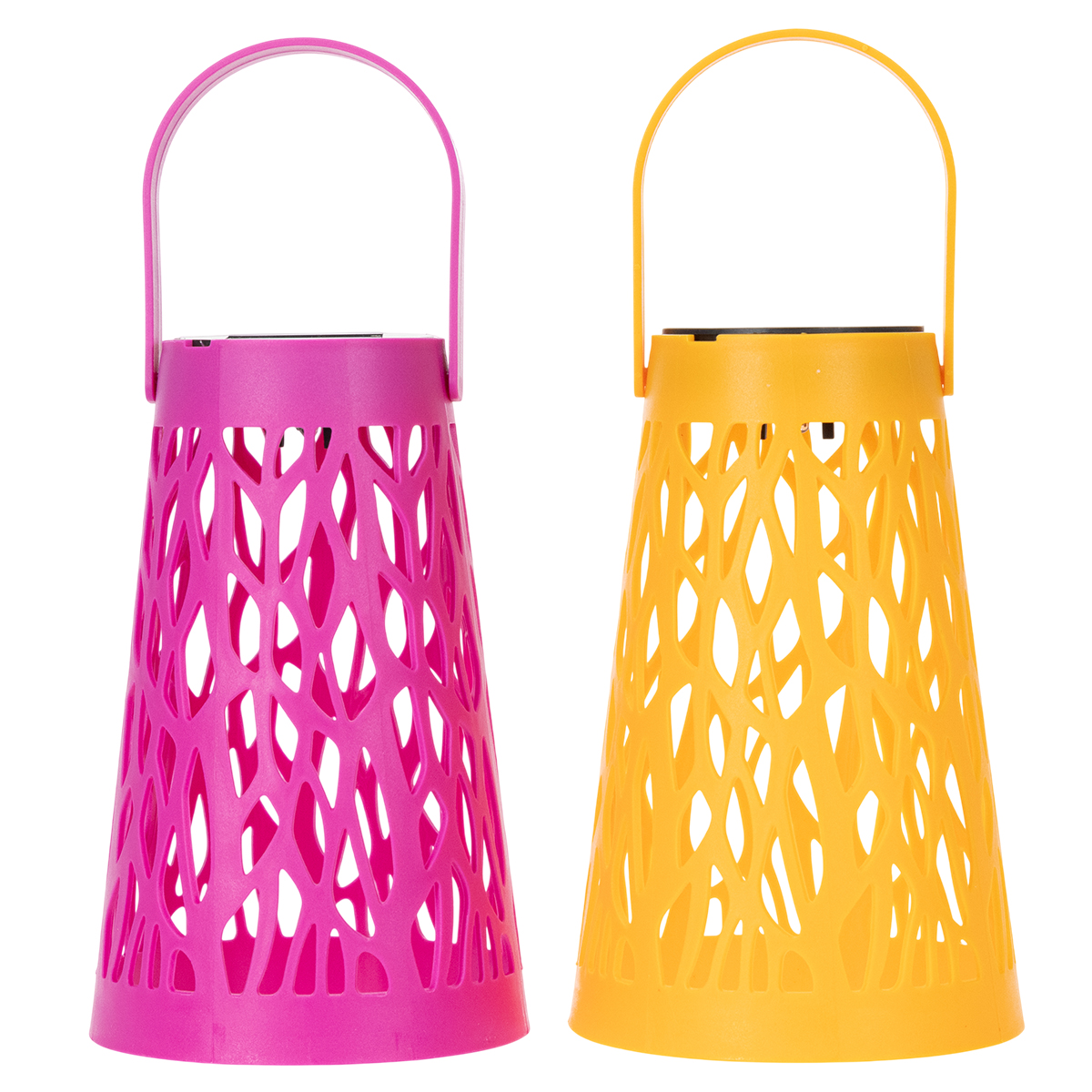 - Set mit zwei Laternen in leuchtendem Pink und Gelb