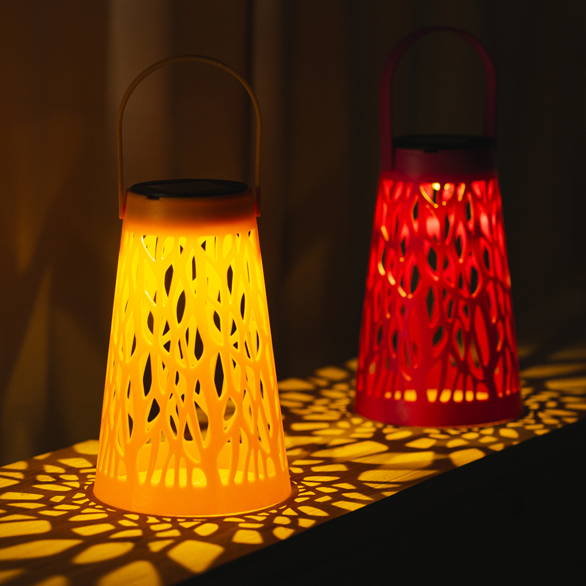 Diese LED-Solar-Laternen kombinieren Funktionalität mit einem modernen, luftigen Design. Aus robustem Kunststoff gefertigt, bringen sie durch ihre leuchtenden Farben Freude in jeden Außenbereich. Das durchbrochene Muster wirkt filigran, während das warmweiße Licht eine harmonische, nicht blendende Beleuchtung garantiert. Mit einer Höhe von 26 cm inklusive Henkel sowie einem kompakten Durchmesser von 11 cm eignen sich die Laternen ideal als vielseitige Dekoration.