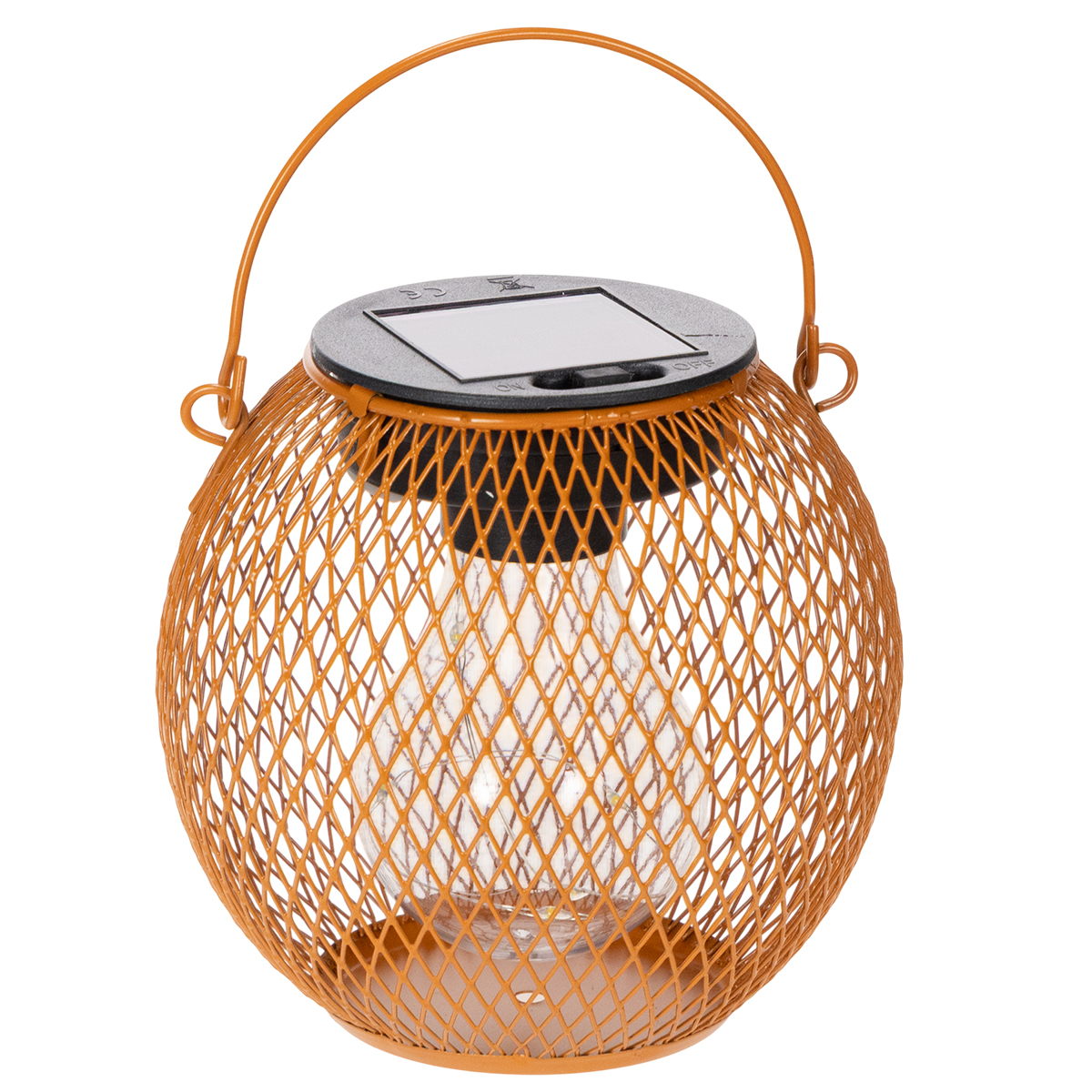 Die Solarlaterne überzeugt mit einem filigranen Metallgehäuse in leuchtendem Orange und einem zeitlosen Gittermuster, das das Licht effektvoll durchschimmern lässt. Das kompakte Design macht sie vielseitig einsetzbar, während das integrierte Solarmodul für eine nachhaltige und umweltschonende Nutzung sorgt. Sie lädt sich tagsüber durch Sonnenlicht auf und bietet am Abend ein angenehm warmweißes Licht, das Behaglichkeit in jeden Außenbereich bringt.
