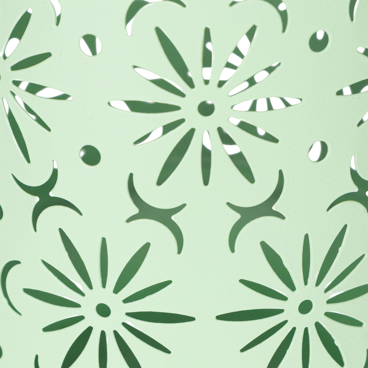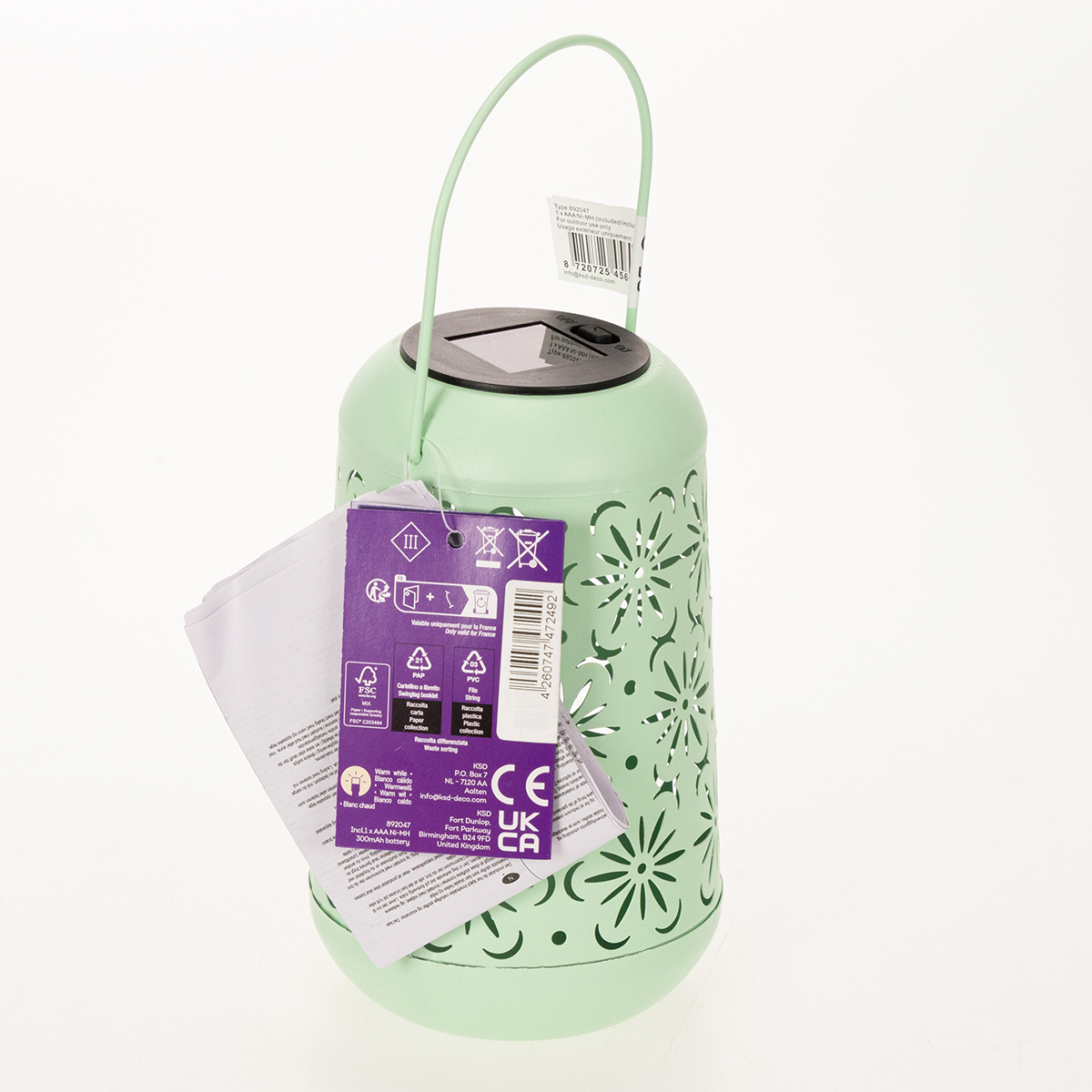 Diese Solarlaterne verbindet den rustikalen Charme des Landhausstils mit modernen Features. Ihre grüne Oberfläche und das florale Muster aus wetterfestem Metall fügen sich harmonisch in jeden Außenbereich ein. Sie passt besonders gut zu Accessoires aus Holz, natürlichen Stoffen oder Keramik und punktet sowohl ästhetisch als auch praktisch.
