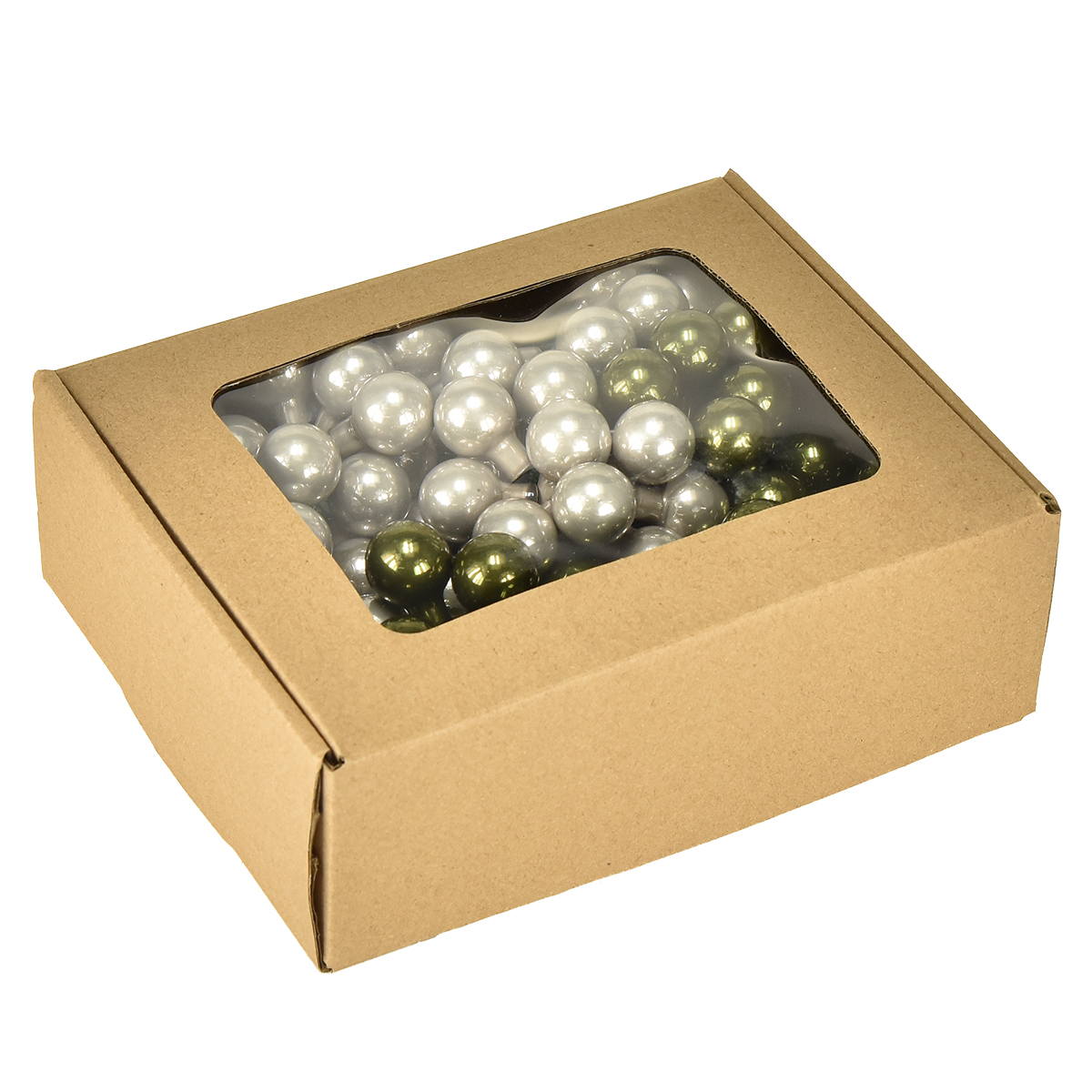 Produktname: Spiegelbeeren Mini-Weihnachtskugeln Glas Olivgrün Creme 20mm 140 Stück