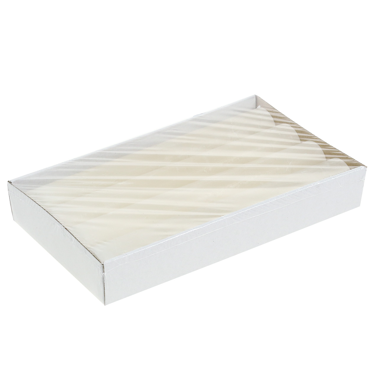 Die 4 durchgefärbten Kerzen in Creme, die nur sehr wenige Lufteinschlüsse im Material aufweisen und dadurch vergleichsweise schwer sind, erhalten Sie in einer Papp-Box, die in Kunststoff-Folie eingeschweißt. ist. Jede der Premiumkerzen verfügt über eine ungefähre Brenndauer von 30 Stunden, über eine Höhe von etwa 300 Millimetern und über einen Durchmesser von circa 34 Millimetern.