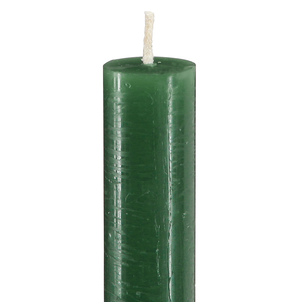 - Dunkelgrüne, durchgefärbte Stabkerzen für anhaltende Farbintensität