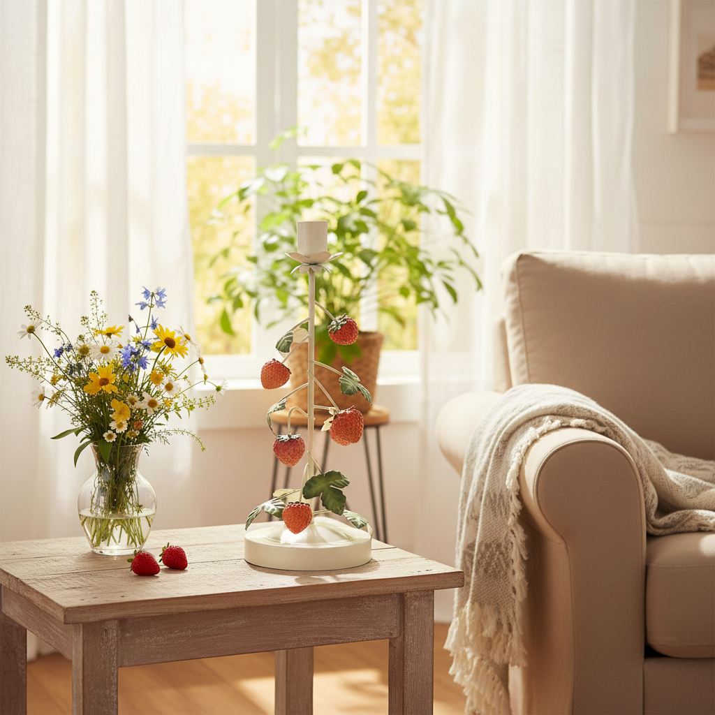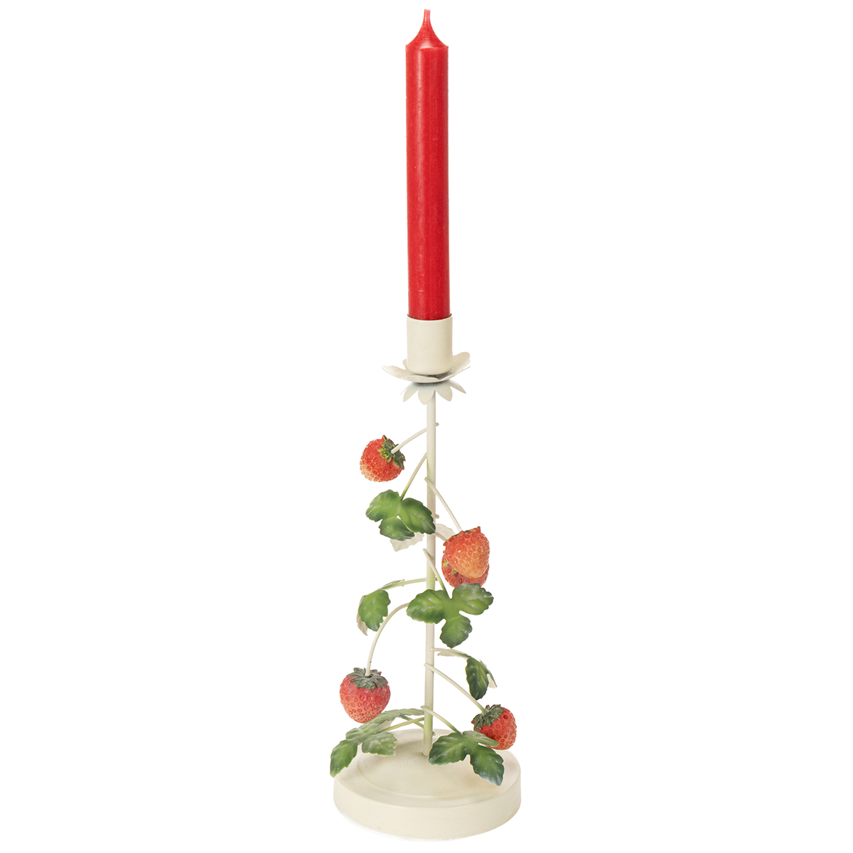 Charmanter Stabkerzenhalter aus Metall mit Erdbeer-Deko