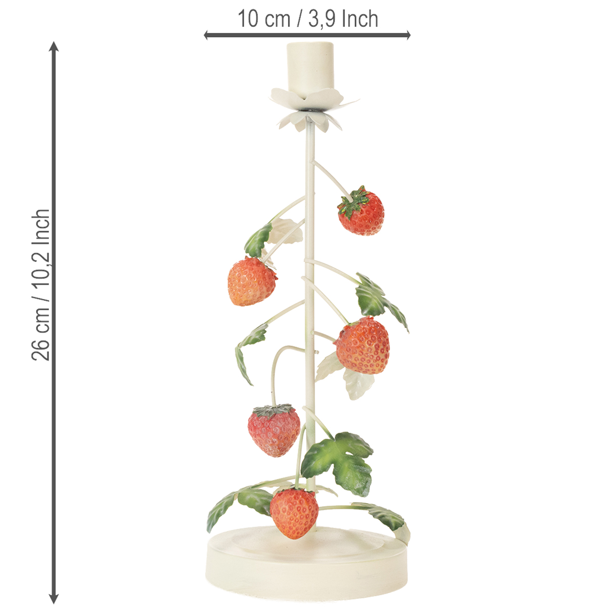 Stabkerzenhalter Metall Erdbeer Sommerdeko Creme Rund H26cm Dekoartikel