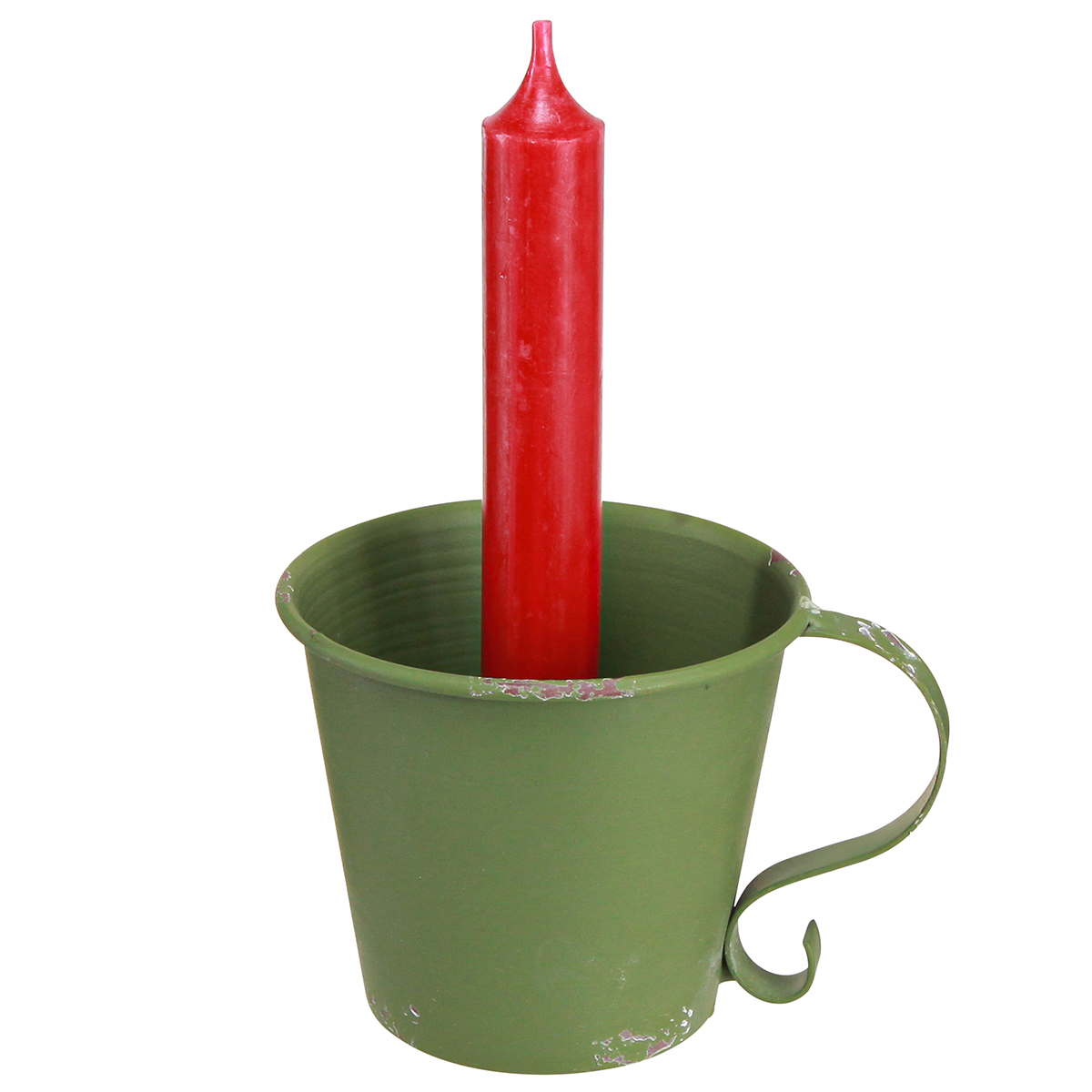 Grüner Metall Stabkerzenhalter im Vintage Tassen-Design Ø9,5cm H8cm 3er-Set