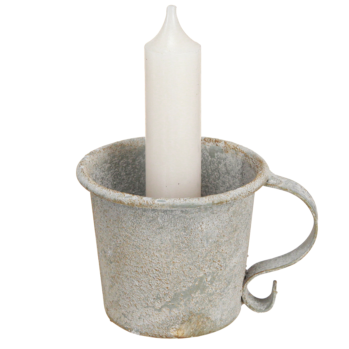 Metall Tassen-Kerzenhalter Grau Vintage-Look Ø7cm H6cm 2er Set