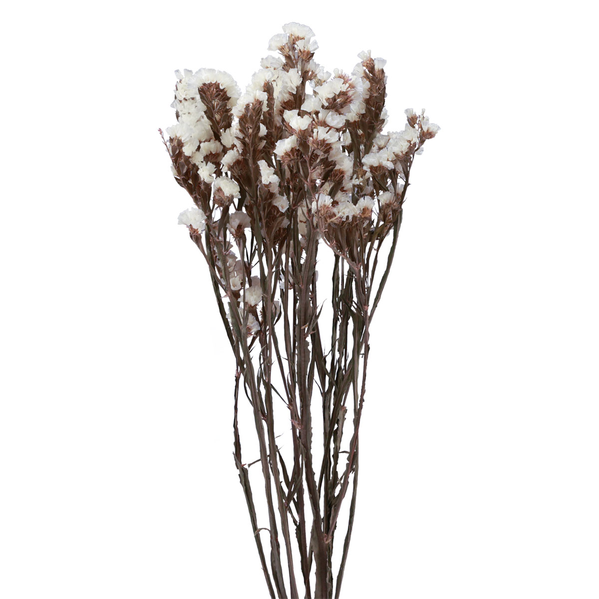 Da es sich bei den Trockenblumen um ein Naturprodukt handelt, schwankt die Länge der einzelnen Zweige etwa zwischen 60 und 65 Zentimetern. Sie erhalten das weiße Limonium in Naturfarben im Bund von ungefähr 35 Gramm.