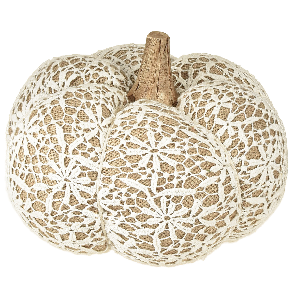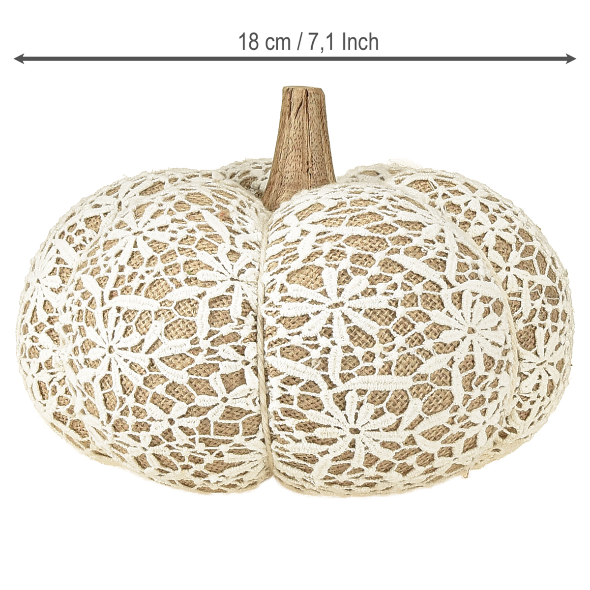 Produktname: Stoff Kürbis Deko Jute Spitze Weiß/Beige Vintage Deko Ø18cm
