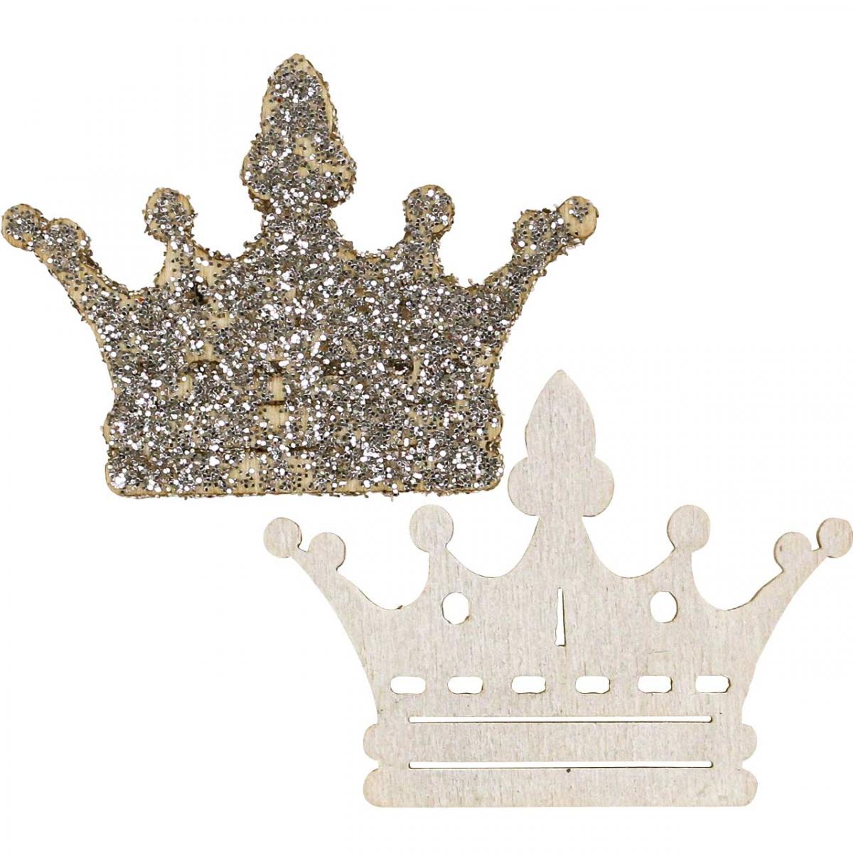 Streudeko Krone Weihnachten Holz Glitter B4cm 72 St