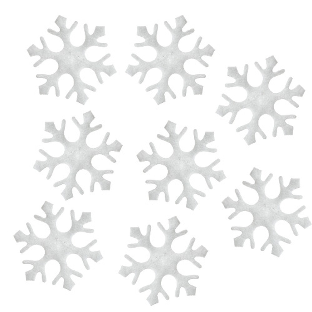 Die Schneeflocken in Weiß befinden sich als Streudeko in einem Paket zu 120 Stück und haben alle eine Größe von etwa 3,5 Zentimeter. Sie bestehen aus hochwertigem Filz und sind demnach ganz leicht zu verstreuen, ohne den Untergrund zu beschädigen. Ganz fantastisch werden auch tolle Familienfotos mit diesen Schneeflocken, wenn Sie die Streudeko kurz vor dem Drücken vom Auslöser in die Luft werfen. Und wenn Sie Ihre Familie zum Weihnachtsessen einladen, können Sie den Tischläufer mit diesen Filzsternen auch weihnachtlich schmücken.