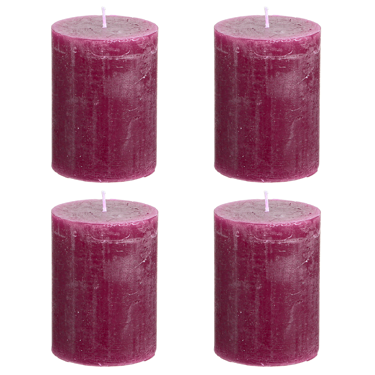 Produktname: Stumpenkerzen durchgefärbt Lila Berry 60×80mm 4 Stk - Dekoration, lange Brenndauer, handgefertigt