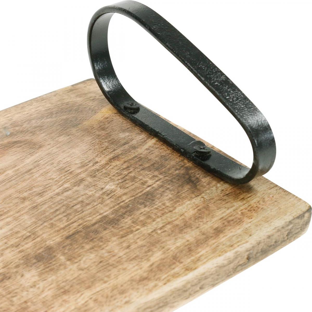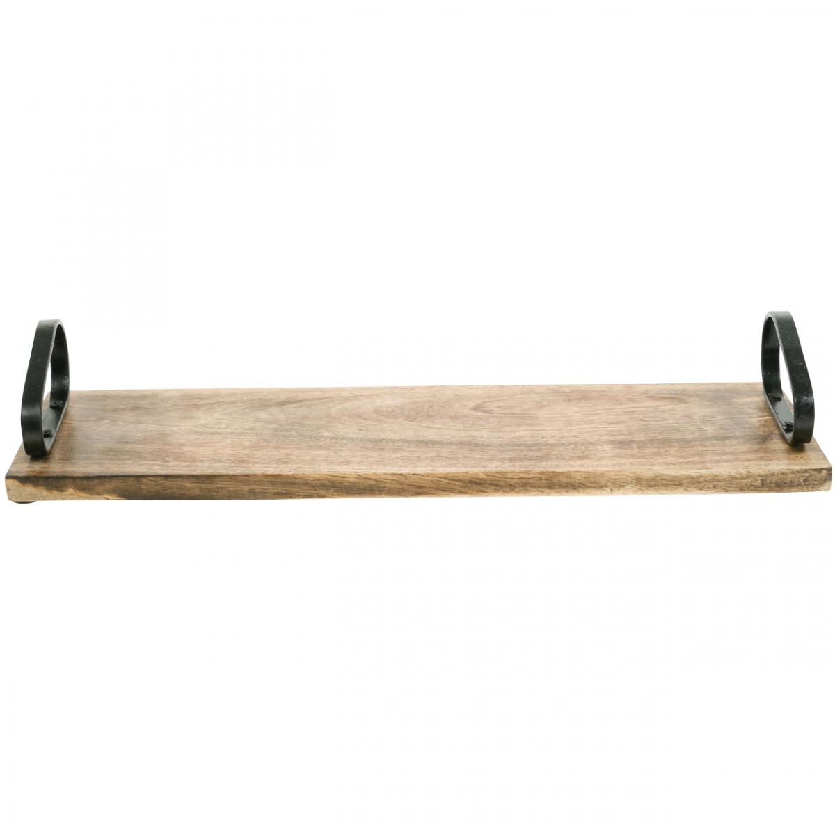 Produktname: Tablett aus Holz, Dekotablett mit Metallgriffen, Tischdeko L44cm