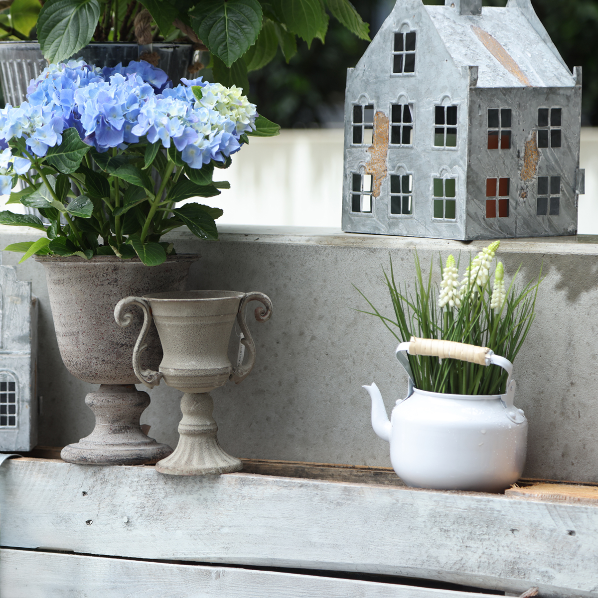 Deko-Teekessel Metall Vintage Look für Blumenarrangements