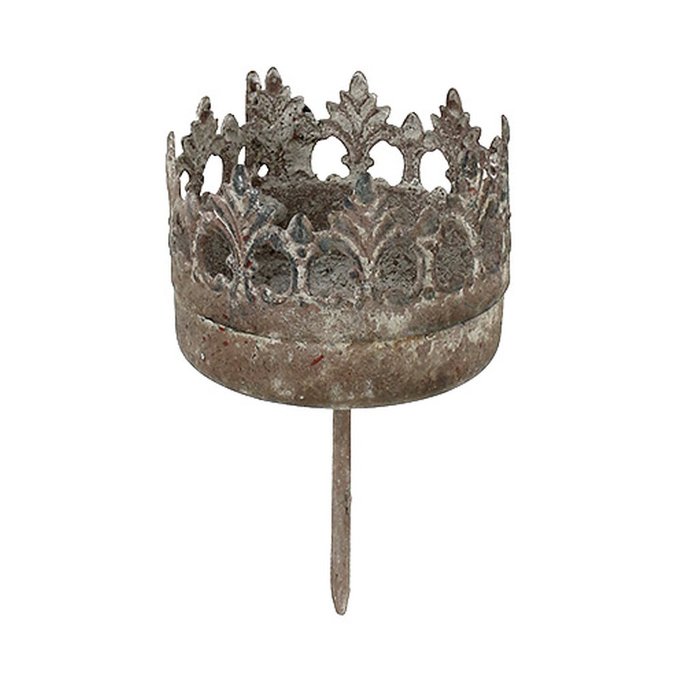 Den antiken Charme des Vintage Looks holen Sie sich mit diesem raffinierten Teelichthalter zum Stecken in die eigenen vier Wände. Das graue Metall wurde so bearbeitet, dass es wie angelaufen und verwittert wirkt – in Kombination mit den Zacken aus filigranen Ornamenten und den kleinen Löchern am Rand, die das Kerzenlicht schön flackern lassen, entsteht so ein edles Dekoelement im Shabby Chic, das sich vielfältig einsetzen lässt. Sie können den Kerzenhalter beispielsweise als kleinen Hingucker in Blumentöpfe und Dekovasen im Innen- und Außenbereich stecken. Mithilfe des spitzen Steckdorns lässt er sich problemlos in verschiedenen Materialien wie Styropor, Steckmasse und auch in Tannenkränzen fixieren.Mit dem antik anmutenden Teelichthalter lassen sich außerdem besonders originelle Tischdekorationen für Hochzeits- oder Geburtstagsfeiern und individuelle Herbst- und Weihnachtskränze ergänzen. Auch Trauer- und Grabgestecken geben Sie mit diesem hübschen Kerzenhalter eine persönliche Note.