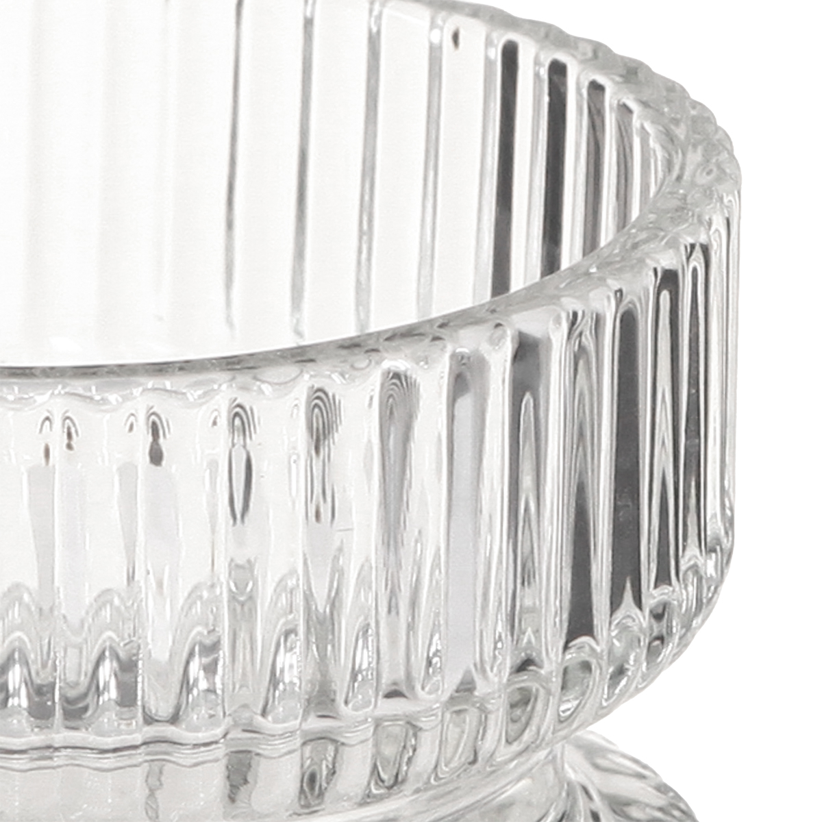 Erschaffen Sie mit diesen geriffelten Glas-Teelichthaltern eine Atmosphäre des Wohlgefühls. Ob für festliche Anlässe, als Tischdekoration in Restaurants oder als dekoratives Element in Wohnräumen – diese Teelichthalter verleihen jedem Ambiente eine Extraportion Eleganz. Im Handumdrehen verzaubern Sie mit diesen Stücke aus Klarglas und ihrer raffinierten Riffelung verschiedenste Settings.
