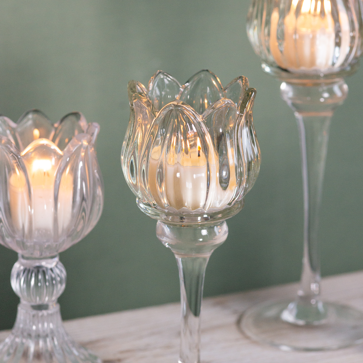 Teelichthalter Glas 17cm in Blumenform - Elegantes Deko-Highlight für eine stilvolle Atmosphäre